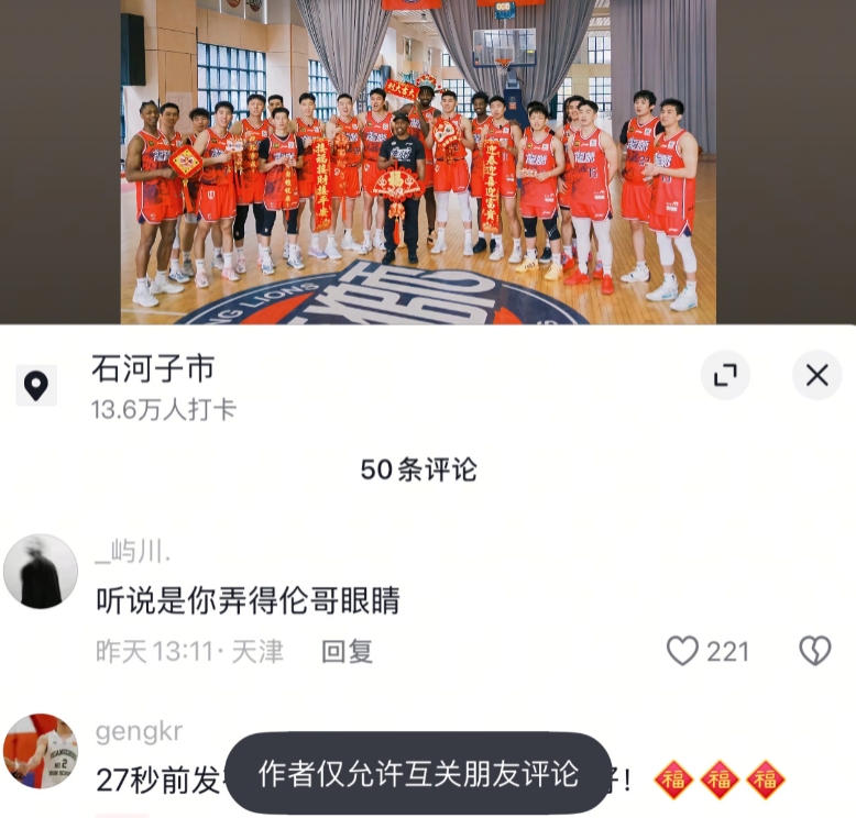 評論區(qū)另一個(gè)熱評則是小將袁照耀,目前已經(jīng)很多點(diǎn)贊,但郭艾倫沒有回復(fù)。值得一提的是,袁的社媒開啟了防打擾,但郭艾倫最新的抖音發(fā)布之后又開啟了。