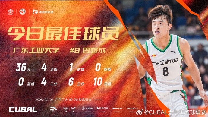 36分4籃板!CUBAL今日最佳球員:廣東工業(yè)大學(xué)曾煜成