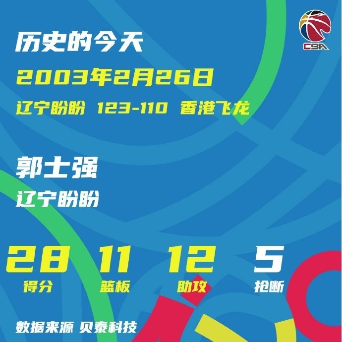 2月26日訊 2003年的今天,郭士強成為遼寧男籃隊史首位斬獲20+三雙的球員 。