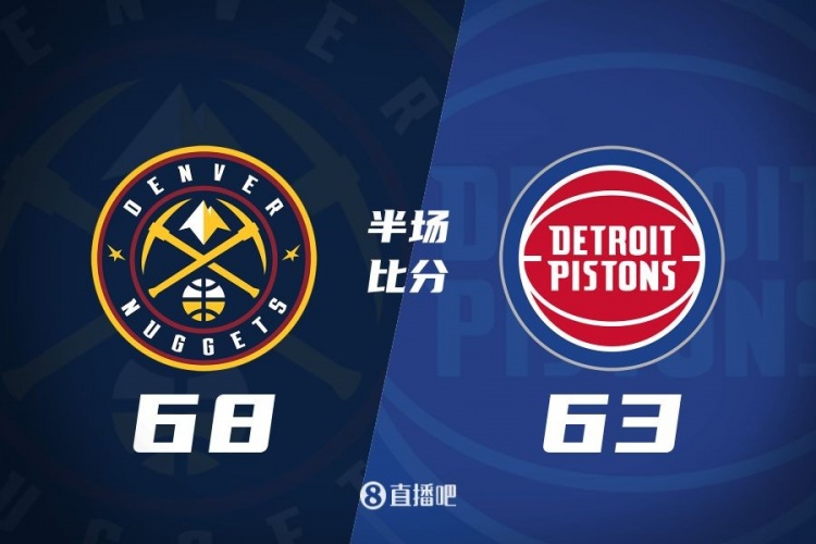 今日NBA常規(guī)賽,掘金客場(chǎng)半場(chǎng)68-63領(lǐng)先活塞5分。
