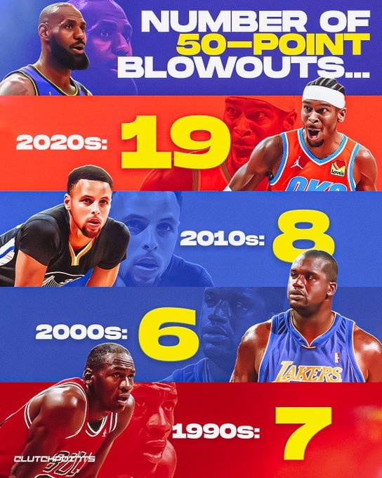 常規(guī)賽分差50+場(chǎng)次:2020年至今19次 20年之前30年21次