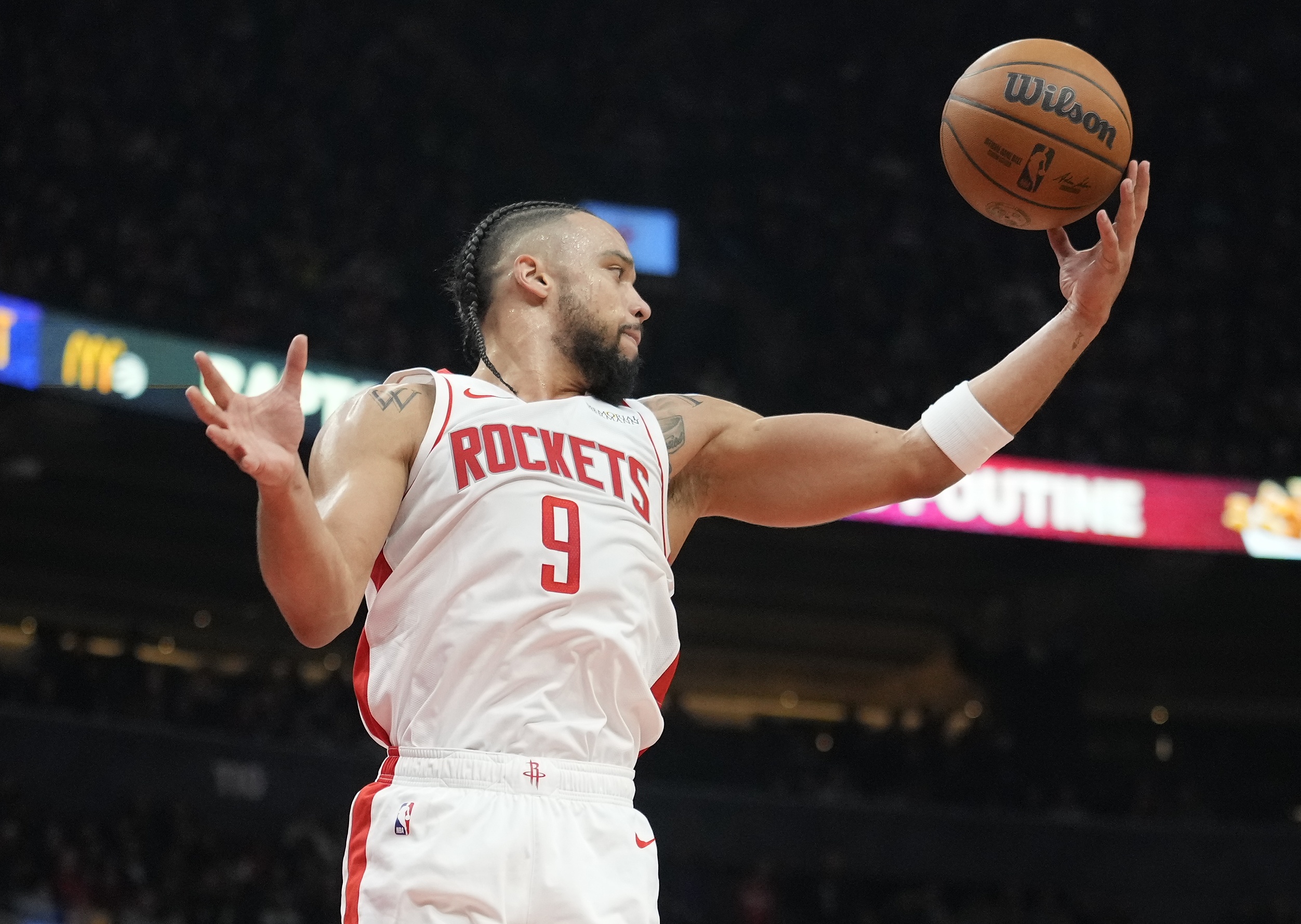 火箭球員狄龍本場(chǎng)比賽手感冰涼,出手投籃頻頻打鐵,還有投出三不沾的情況。