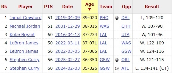 據統(tǒng)計,哈登以35歲零191天的年紀,成為NBA歷史上第8老的50分先生。