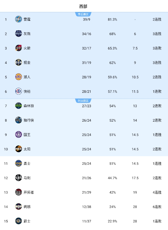 太陽戰(zhàn)績來到25勝24負,跟今天贏球的國王和勇士再次戰(zhàn)平。由于排名規(guī)則,太陽排在西部第十。