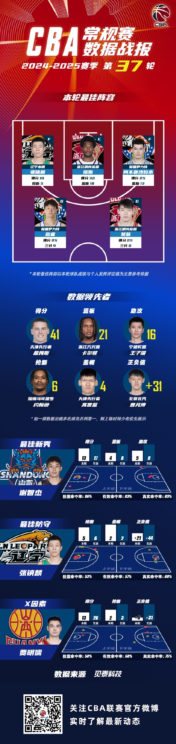 第37輪最佳新秀由來自山東高速籃球俱樂部的謝智杰獲得;