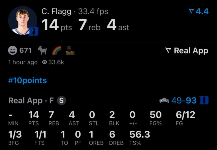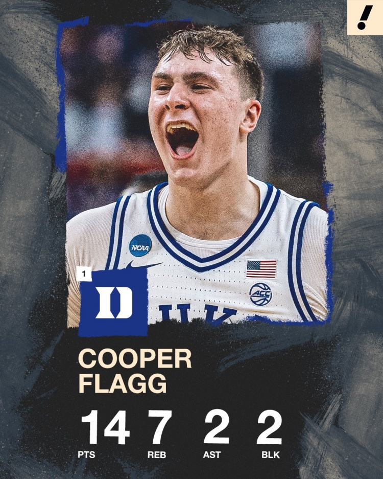 弗拉格瘋?cè)仔?2中6輕取14分7板4助2帽 幫助杜克大勝圣瑪麗山!