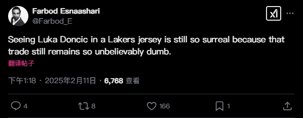 賽后,快船隊(duì)記Farbod Esnaashari發(fā)推寫道:“看到盧卡-東契奇身穿湖人球衣依然讓人感覺(jué)很不真實(shí),因?yàn)槟枪P交易是那么不可理喻!愚蠢。”