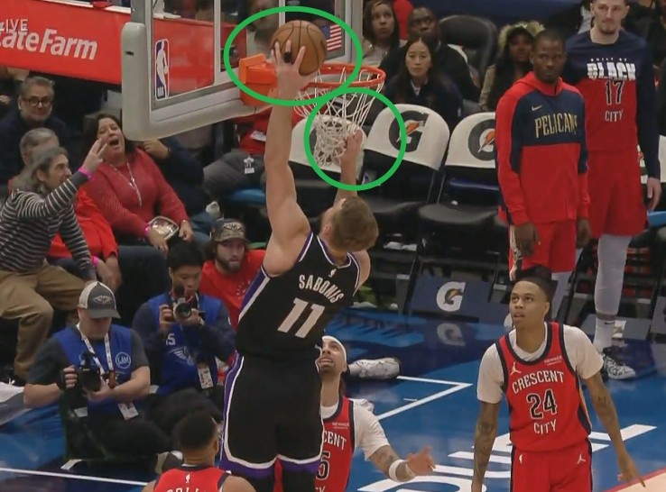 虧到家了!小薩前場(chǎng)籃板補(bǔ)扣反超&但同時(shí)手抓籃網(wǎng) 鵜鶘抱怨吃T!