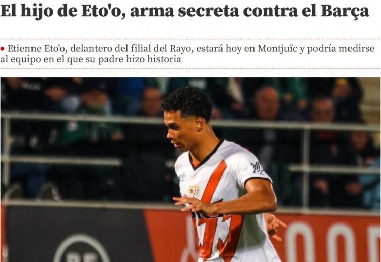 2月17日訊 《世界體育報(bào)》報(bào)道,埃托奧的兒子埃蒂安-埃托奧今晚將進(jìn)入巴列卡諾一線隊(duì)名單,可能出戰(zhàn)巴薩。