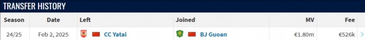塞爾吉尼奧現(xiàn)年29歲,2020年加盟長春亞泰,本賽季轉(zhuǎn)會北京國安,根據(jù)德轉(zhuǎn)信息,塞爾吉尼奧此次轉(zhuǎn)會費為52.6萬歐。