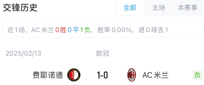 2月19日訊 歐冠淘汰賽附加賽次回合,AC米蘭主場(chǎng)迎戰(zhàn)費(fèi)耶諾德比賽即將打響。賽前首發(fā)出爐。首回合對(duì)陣,費(fèi)耶諾德1-0米蘭。