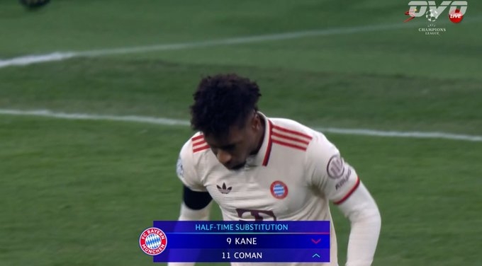 凱恩半場被科曼換下,本場曾射門擊中橫梁