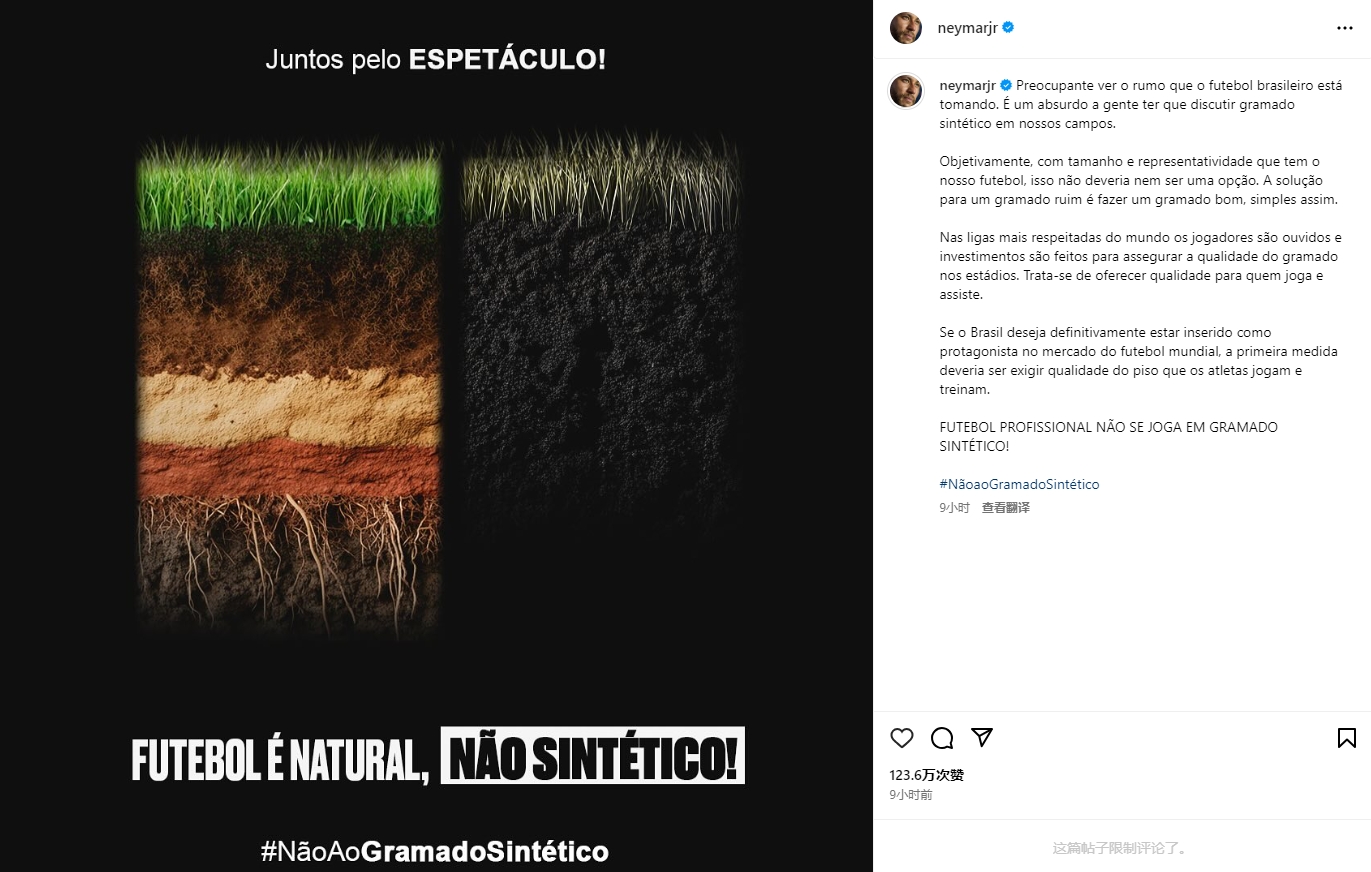 02月19日訊 內馬爾、庫蒂尼奧、蒂亞戈-席爾瓦等人社媒發(fā)布相同的長文,對巴西足球球場使用人工草皮進行批評。