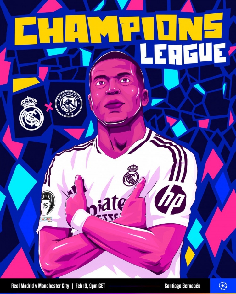 皇馬社媒發(fā)布?xì)W冠對陣曼城海報:姆巴佩做出標(biāo)志性慶祝動作