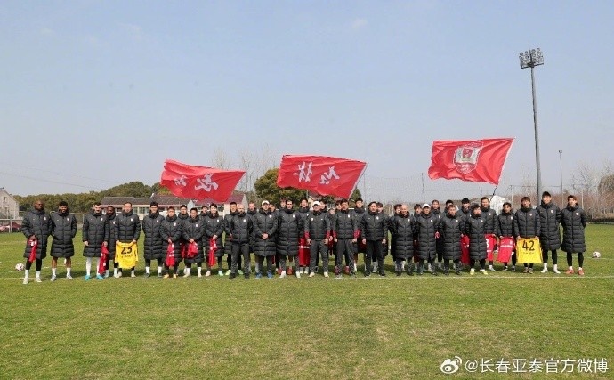 19日10時,上海天氣晴好,亞泰將士抵達(dá)訓(xùn)練場。訓(xùn)練前,全隊舉行了新賽季出征儀式。俱樂部總經(jīng)理曾皎峰帶著省市體育局的囑托,專程從長春趕到上??赐麃喬⑹俊T诔稣鲀x式上,曾皎峰受省市體育局委托,向全體將士授吉林省旗、長春市旗、亞泰隊旗,主帥謝暉、領(lǐng)隊常琳、隊長譚龍分別接過吉林省、長春市、長春亞泰三面大旗。“在剛剛結(jié)束的在哈爾濱第九屆亞洲冬季運動會上,吉林省冰雪健兒敢打敢拼、不畏困難,獲得了9金5銀6銅的優(yōu)異成績,為祖國和家鄉(xiāng)贏得了榮譽,進(jìn)一步激發(fā)了吉林省體育系統(tǒng)奮勇爭先的熱情。作為足球運動員,我希望長春亞泰全體將士們,牢記為長春戰(zhàn)斗的使命,共同努力,換來一年的好成績?!痹ǚ逭f。