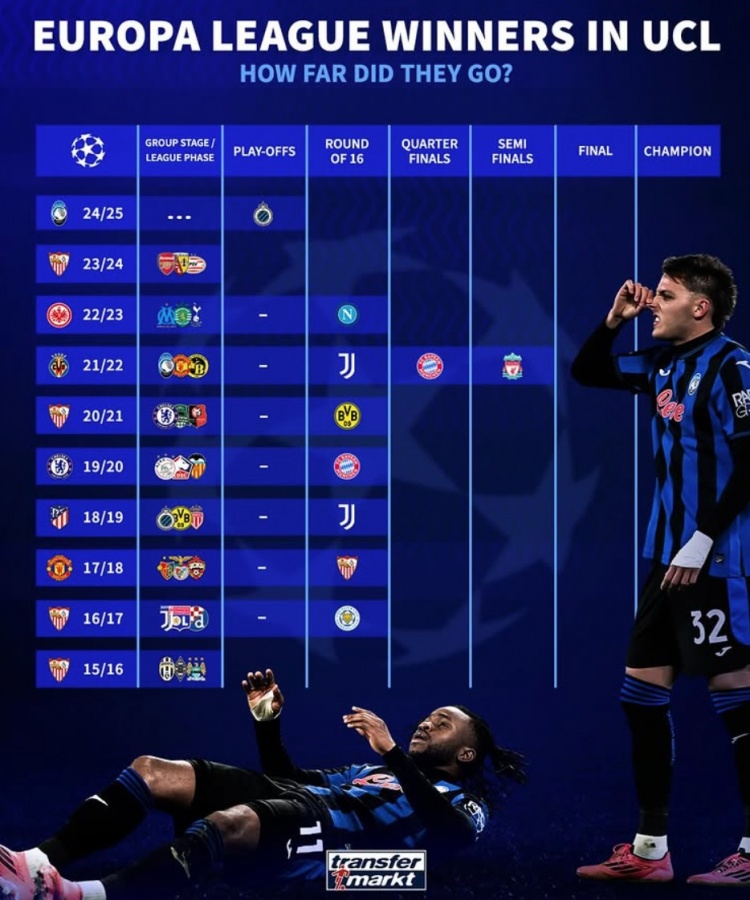 2月20日訊 亞特蘭大在本輪歐冠附加賽被布魯日淘汰出局,表現(xiàn)未能達(dá)到預(yù)期?!掇D(zhuǎn)會市場》也列出了近10年歐聯(lián)杯冠軍在第二年參加歐冠的成績。