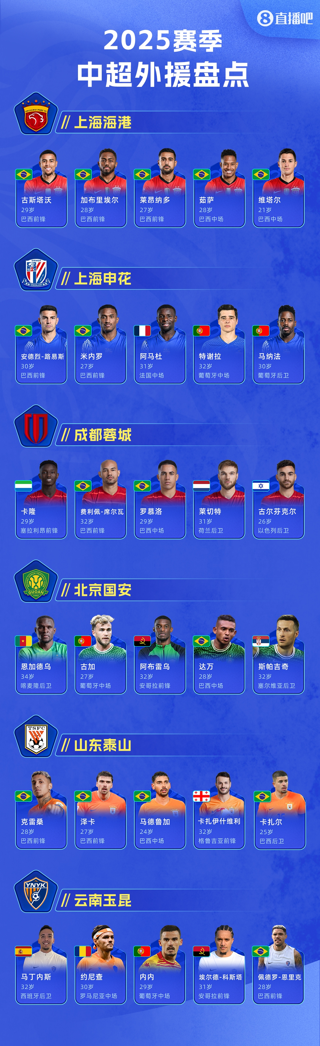 【直播吧】2025中超外援盤點:后奧斯卡時代16隊哪家外援最強?