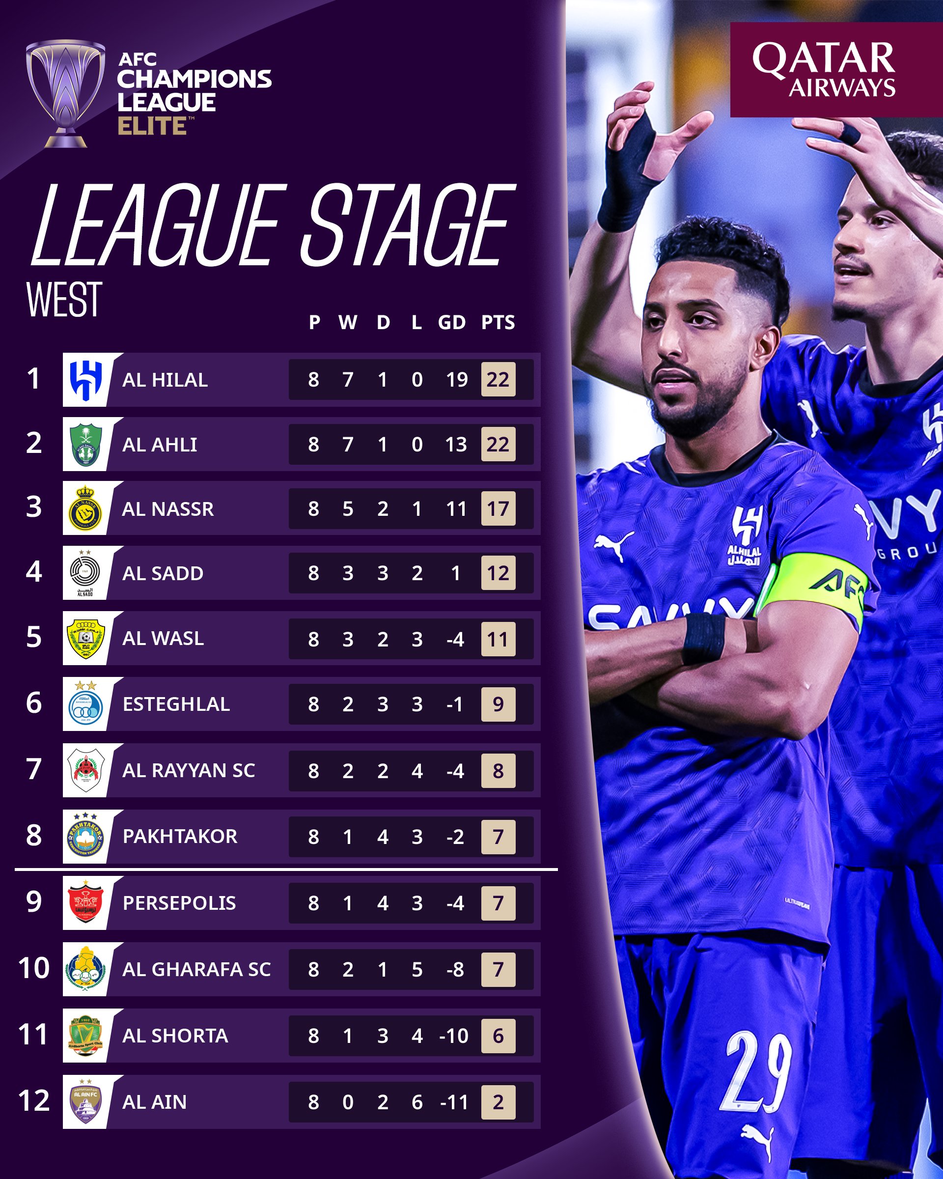 02月21日訊 亞冠官方公布了亞冠精英聯(lián)賽東西亞區(qū)積分榜。