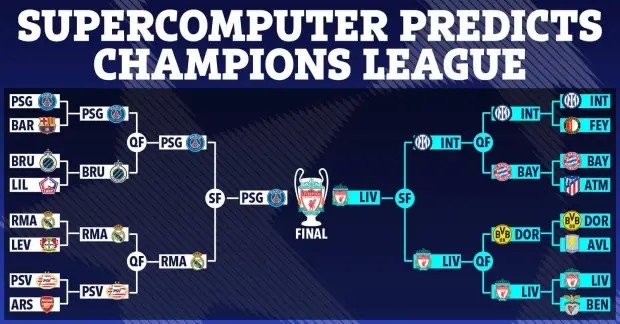 超算預(yù)測歐冠:利物浦擊敗巴黎奪冠,阿森納、維拉止步16強(qiáng)