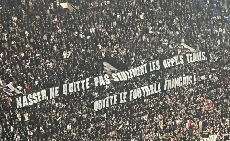 RMC:部分里昂球迷拉橫幅,要求巴黎主席納賽爾退出法國足球