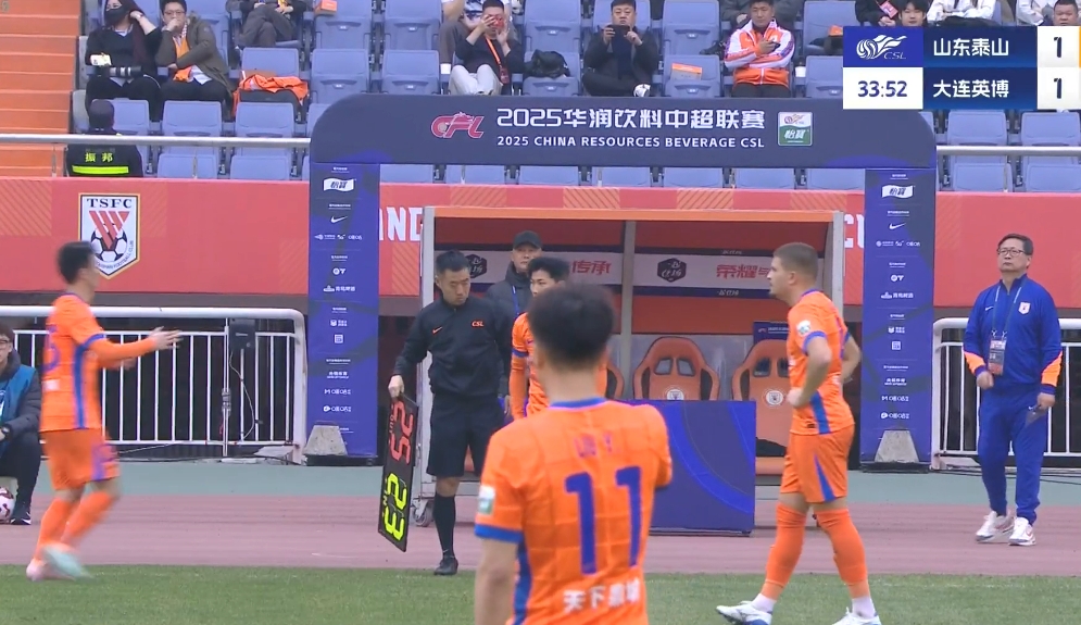 02月28日訊 泰山第34分鐘做出換人調(diào)整,謝文能換下彭欣力!