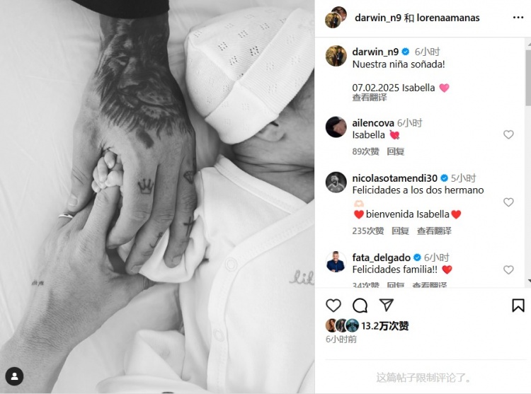努涅斯表示道:“我們的夢(mèng)中女孩,2025年2月7日,伊莎貝拉????”。