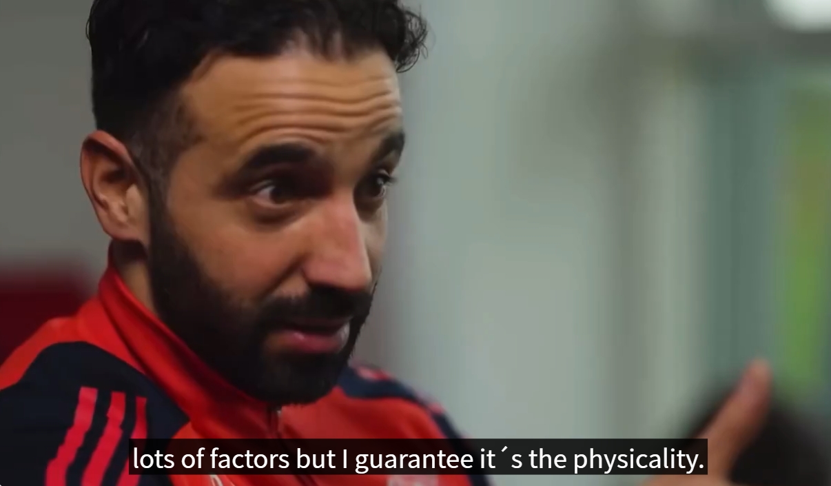 阿莫林:在這里我們對(duì)陣一些球隊(duì)的時(shí)候,他們的身體素質(zhì)就在那里,有時(shí)候他們不需要很多組織,直接一個(gè)長(zhǎng)傳,然后二點(diǎn)球,他們就拿到了。所以說(shuō)如果你沒(méi)有身體素質(zhì),那我們就會(huì)非常掙扎。現(xiàn)在安東尼在西班牙踢得好多了,這里面有很多因素,但我保證,絕對(duì)有身體因素。你可以看到我們隊(duì)的一些球員,當(dāng)他追上和他一樣壯一樣快的球員時(shí),真的很難撞倒那個(gè)人。