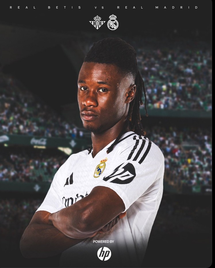 3月1日訊 本輪西甲皇馬將客場(chǎng)迎戰(zhàn)貝蒂斯,球隊(duì)官方也曬出海報(bào)為本場(chǎng)比賽預(yù)熱,卡馬文加單人出鏡。