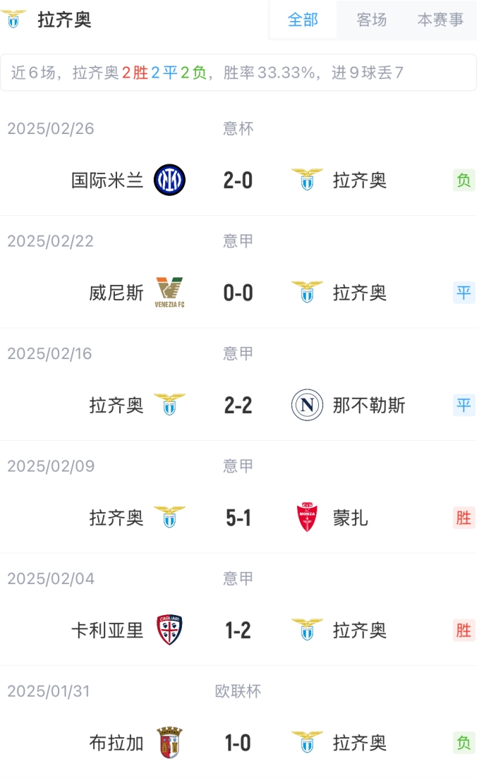 拉齊奧首發(fā):94-普羅維德爾、2-薩繆爾-吉奧特、30-塔瓦雷斯、34-吉拉、77-馬魯西奇、6-羅維拉、8-貢多齊、20-查奧納、10-扎卡尼、19-布萊-迪亞、18-伊薩克森