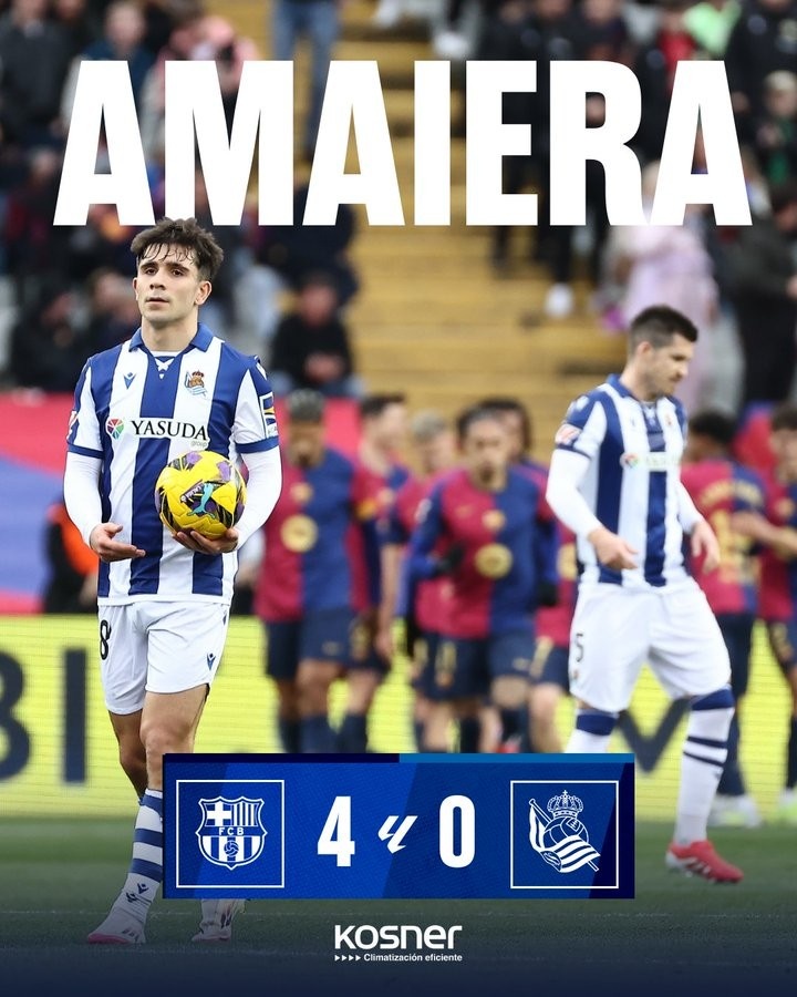 3月3日訊 皇家社會(huì)在本輪西甲客場(chǎng)0-4慘敗巴薩,他們?nèi)珗?chǎng)未能完成任何射門。