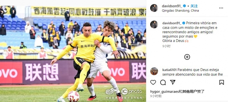 3月5日訊 中超第二輪比賽,青島西海岸主場2-0擊敗武漢三鎮(zhèn),取得了新賽季首勝。賽后,戴維森更新社媒,談到了獲勝的感受。