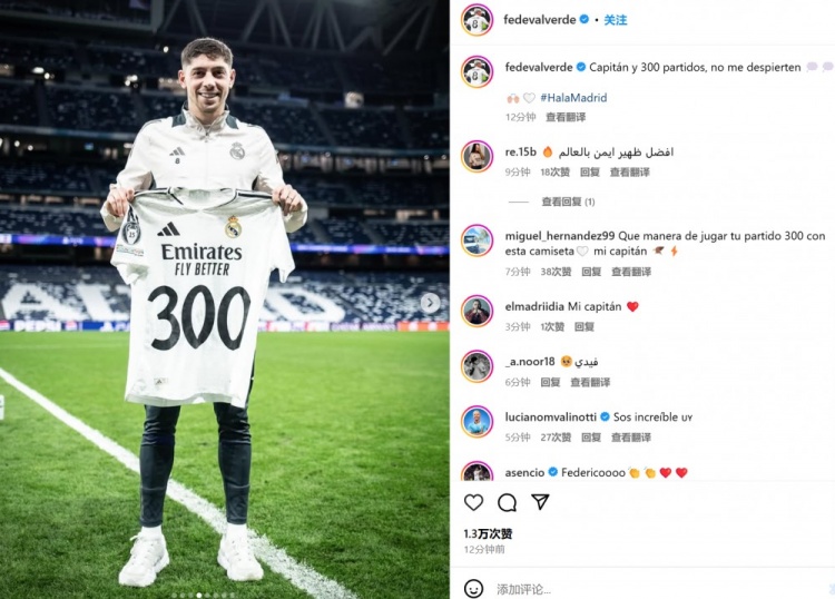 他也在賽后通過社媒曬出自己手持印有300字樣的皇馬紀念球衣的照片,同時還紀念道:“隊長袖標+皇馬300場,請別叫醒我。”