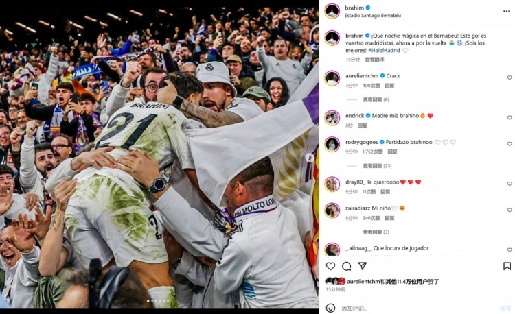 本場(chǎng)比賽迪亞斯破門(mén),賽后他也在個(gè)人社媒曬出瘋狂慶祝進(jìn)球的照片,配文寫(xiě)道:“多么神奇的伯納烏夜晚,進(jìn)球獻(xiàn)給你們,皇馬球迷們,現(xiàn)在專注于下回合比賽。你們是最棒的!”