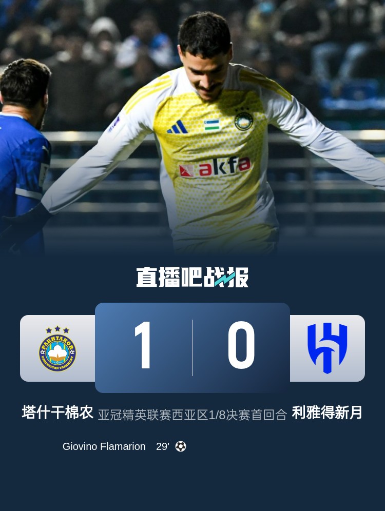 亞冠精英聯(lián)賽西亞區(qū)1/8決賽首回合,利雅得新月首回合0-1塔什干棉農(nóng)。上半場(chǎng),弗拉馬里昂撞射破門,布萊希傷退;下半場(chǎng),米林科維奇錯(cuò)失良機(jī),新月完成一次門線解圍。