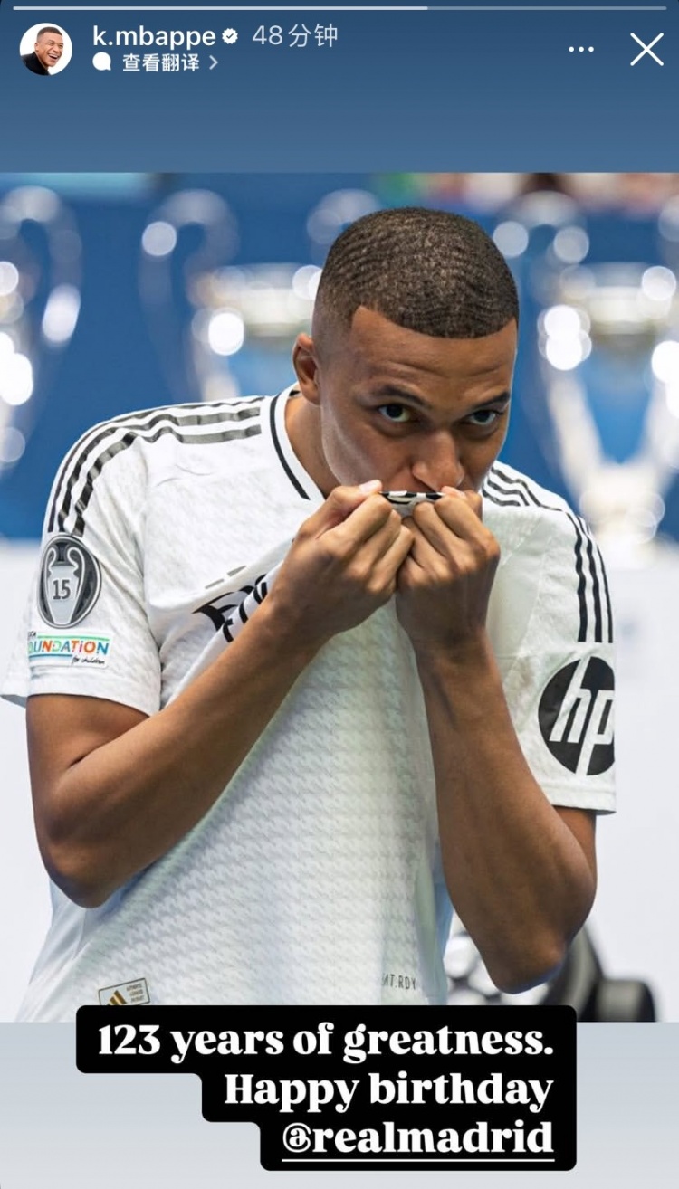 姆巴佩祝賀皇馬成立123周年:123年的偉大歷史,皇馬生日快樂
