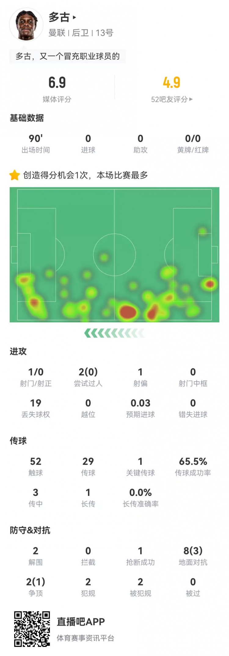 3月7日訊 曼聯(lián)在本輪歐聯(lián)杯1-1戰(zhàn)平皇家社會(huì),多古本場(chǎng)數(shù)據(jù)如下:
