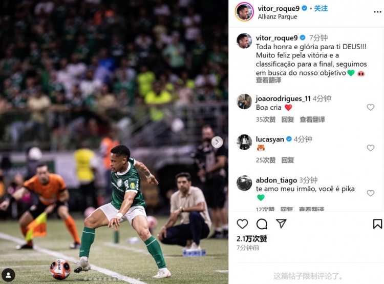 羅克也在賽后通過社媒曬出自己的比賽照,并配文:“一切榮耀歸于上帝?。。『芨吲d能夠取得勝利并晉級決賽,我們將繼續(xù)追逐我們的目標。”