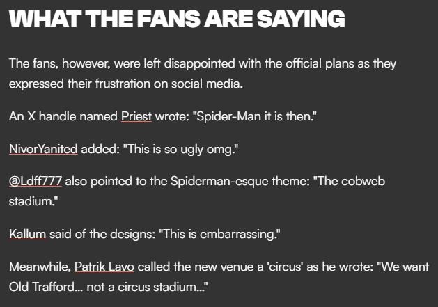 球迷吐槽曼聯(lián)新主場(chǎng)設(shè)計(jì)方案:太難看了!擱這整馬戲團(tuán)呢?