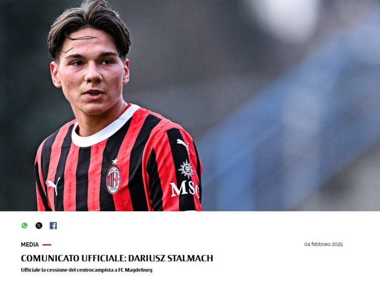 2月5日訊 AC米蘭官方宣布,青年隊(duì)中場(chǎng)球員斯塔爾馬赫已經(jīng)轉(zhuǎn)會(huì)至德乙馬迪堡。