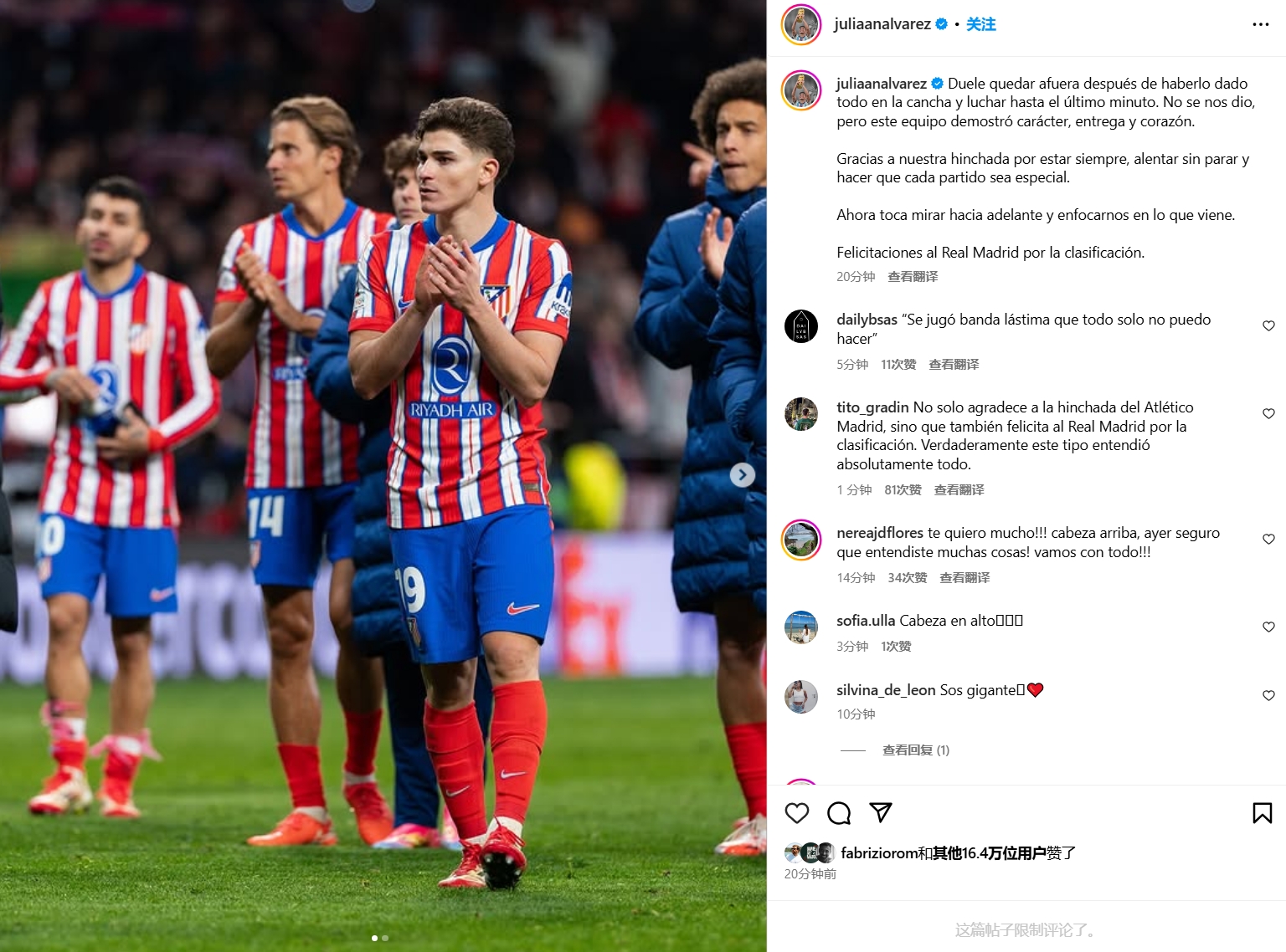 03月14日訊 歐冠16強(qiáng)對(duì)決,馬競(jìng)在點(diǎn)球戰(zhàn)不敵皇馬,阿爾瓦雷斯點(diǎn)球戰(zhàn)點(diǎn)球罰進(jìn)但因二次觸球被判無(wú)效。阿爾瓦雷斯如今在社媒發(fā)文談到感想。