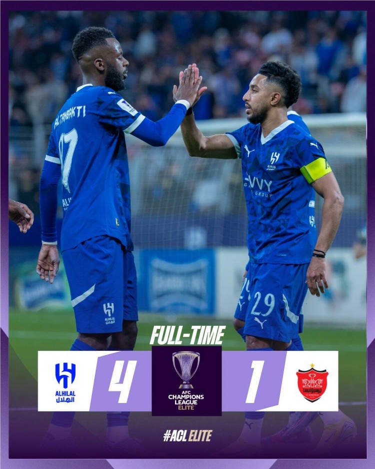 亞冠精英聯賽西亞區(qū)第7輪,利雅得新月4-1擊敗波斯波利斯。上半場,馬爾科姆超級一條龍破門,坎塞洛擴大優(yōu)勢,多薩里連進兩球。下半場,布萊希送點,格維勒西亞尼點射扳回一球。