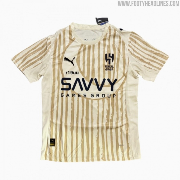 3月17日訊 足球裝備網(wǎng)站footyheadlines透露利雅得新月2025世俱杯球衣信息,球衣以米黃色為主色調(diào),并配有棕褐色條紋以及海軍藍(lán)色的logo。