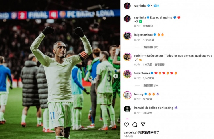 各送1助攻!佩德里&拉菲尼亞社媒慶祝勝利:瘋狂!這就是意志力!