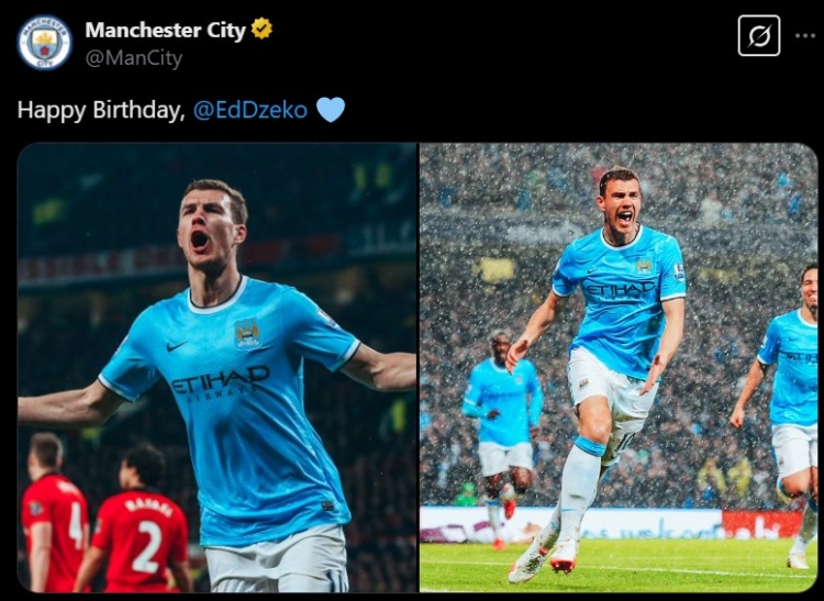 3月17日訊 今天是波黑前鋒哲科39歲生日,曼城官推也曬照祝這位舊將生日快樂。
