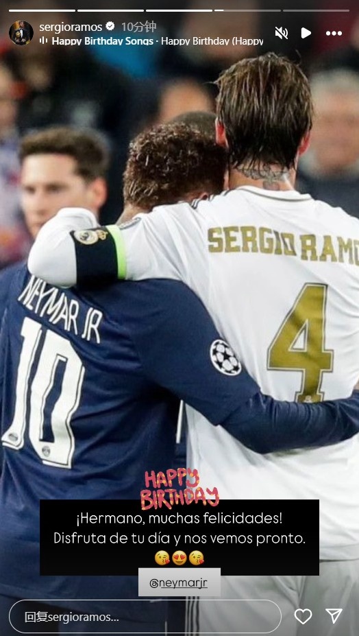 拉莫斯更新社媒動態(tài),分別祝賀前隊友內(nèi)馬爾和C羅生日快樂