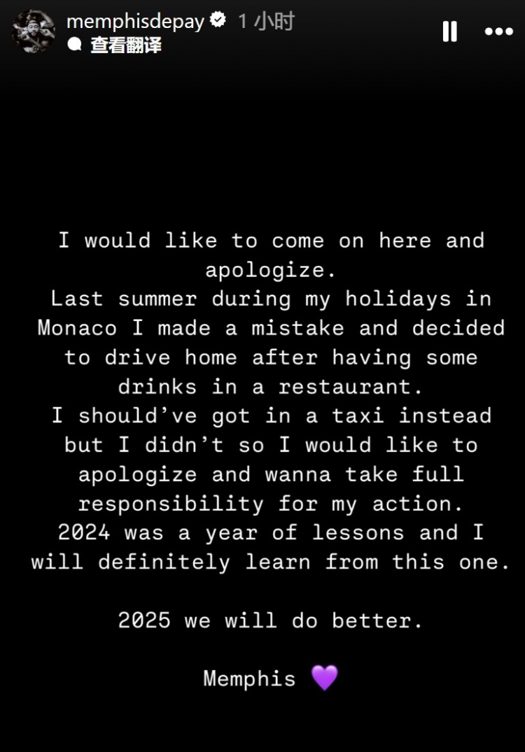 德佩寫道:“我想向大家道歉。去年夏天在摩納哥度假時(shí),我犯了一個(gè)錯(cuò)誤,在餐廳喝了點(diǎn)酒后我決定開車回家。我原本應(yīng)該打車的,但我沒這么做,所以我想道歉,并愿意為我的行為承擔(dān)全部責(zé)任。”
