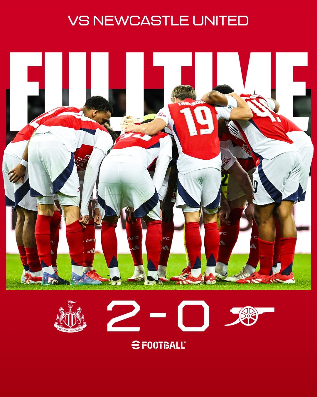 阿森納0-2遭紐卡斯?fàn)栯p殺,總比分0-4出局,無緣決賽。