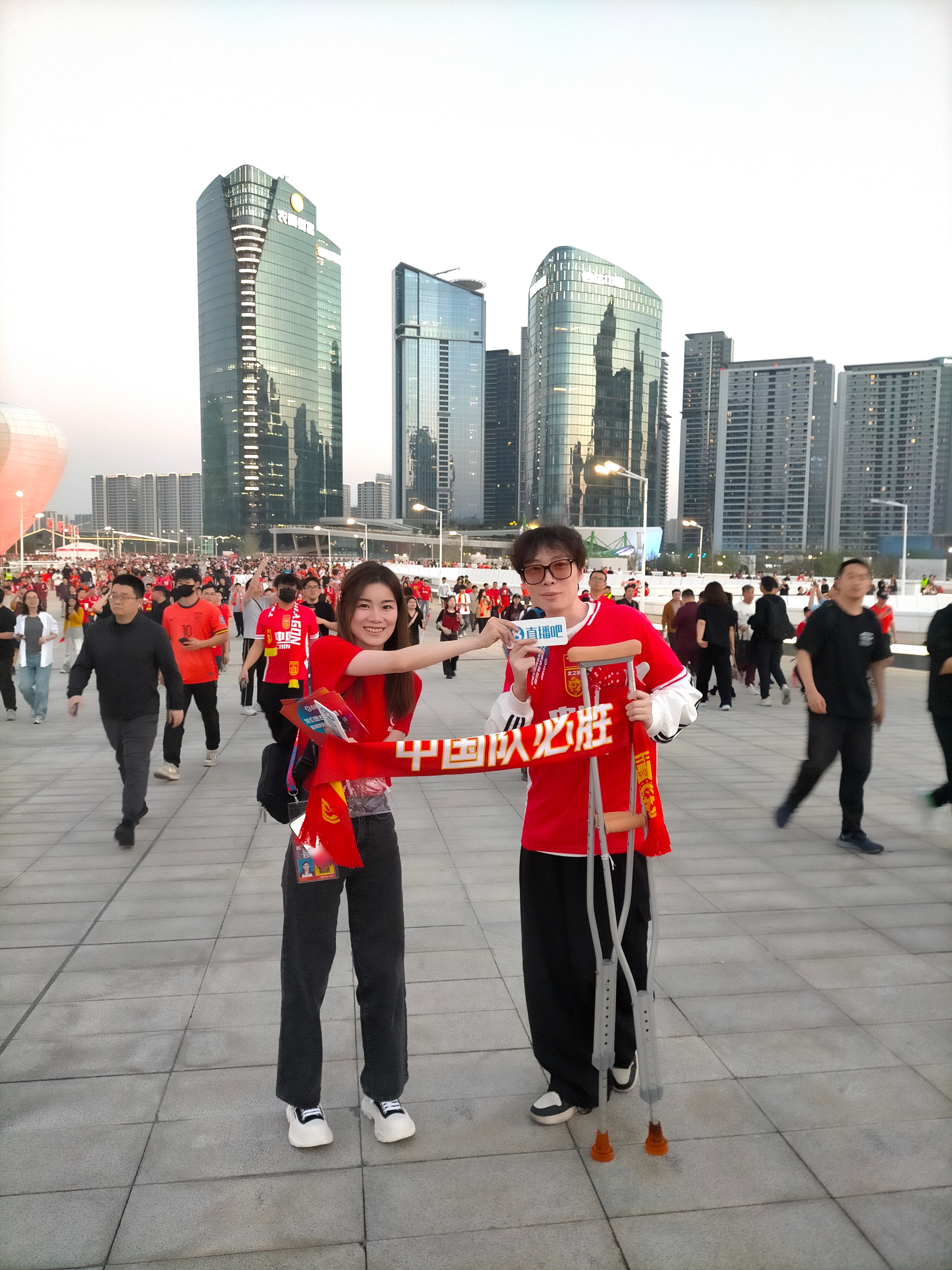 球迷入場前,特邀知名足球解說員劉暢、吳桐現(xiàn)身球場外圍互動(dòng)區(qū),與候場球迷共同開啟“我們想去美加墨·國足知識(shí)大挑戰(zhàn)”主題活動(dòng)。兩位解說以專業(yè)又不失風(fēng)趣的風(fēng)格串聯(lián)答題環(huán)節(jié),現(xiàn)場球迷踴躍參與,爭奪國足助威圍巾等限定周邊?;顒?dòng)過程中,一位從西安乘坐火車輾轉(zhuǎn)20小時(shí),專程來見證這場比賽的12年老吧友坦言:“勝負(fù)之外,主隊(duì)永遠(yuǎn)值得奔赴”。更有廣東韶關(guān)學(xué)生球迷不惜暫時(shí)放下學(xué)業(yè)來杭州觀賽,以自身行動(dòng)詮釋“00后”對(duì)國足的熱忱。