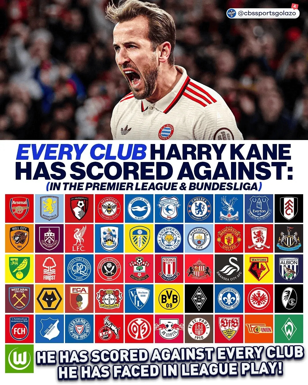 據(jù)媒體數(shù)據(jù)統(tǒng)計(jì),此役過后,凱恩生涯在德甲、英超面對過51家俱樂部,而且全場完成破門得分!