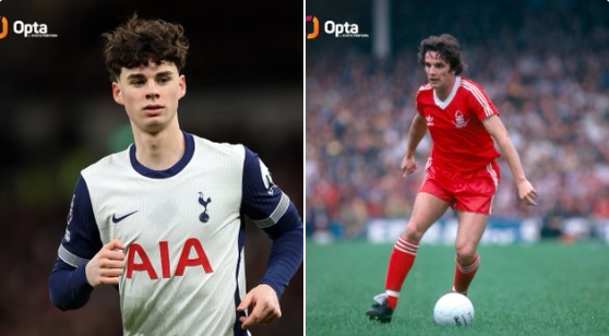 數(shù)據(jù)統(tǒng)計顯示,在1980年聯(lián)賽杯半決賽的安菲爾德球場,阿奇-格雷的爺爺弗蘭克-格雷也曾代表諾丁漢森林首發(fā)出戰(zhàn)。